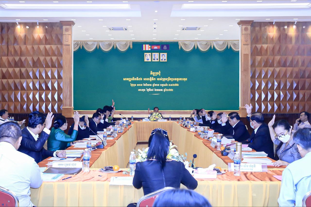 ឯកឧត្តម កាយ សំរួម ប្រធានក្រុមប្រឹក្សាខេត្តកោះកុង បានអញ្ជើញជាអធិបតី ដឹកនាំកិច្ចប្រជុំសាមញ្ញ លើកទី៣៦ អាណត្តិទី៣ របស់ក្រុមប្រឹក្សាខេត្តកោះកុង ដោយមានការចូលរួមពីឯកឧត្តម លោកជំទាវ សមាជិកក្រុមប្រឹក្សាខេត្ត លោកជំទាវ អភិបាលខេត្ត លោកអភិបាលរងខេត្ត លោក លោកស្រី ប្រធានមន្ទីរ អង្គភាពជុំវិញខេត្ត និងមន្ត្រីរាជការសាលាខេត្ត ព្រមទាំងមន្ត្រីពាក់ព័ន្ធនានា។