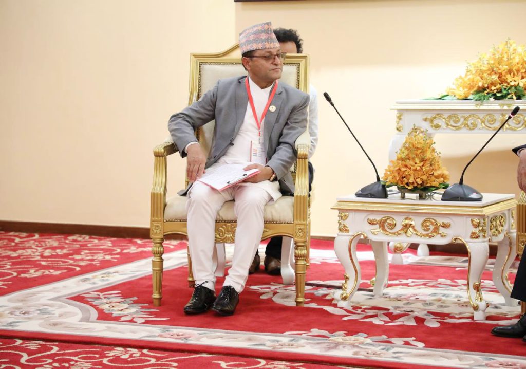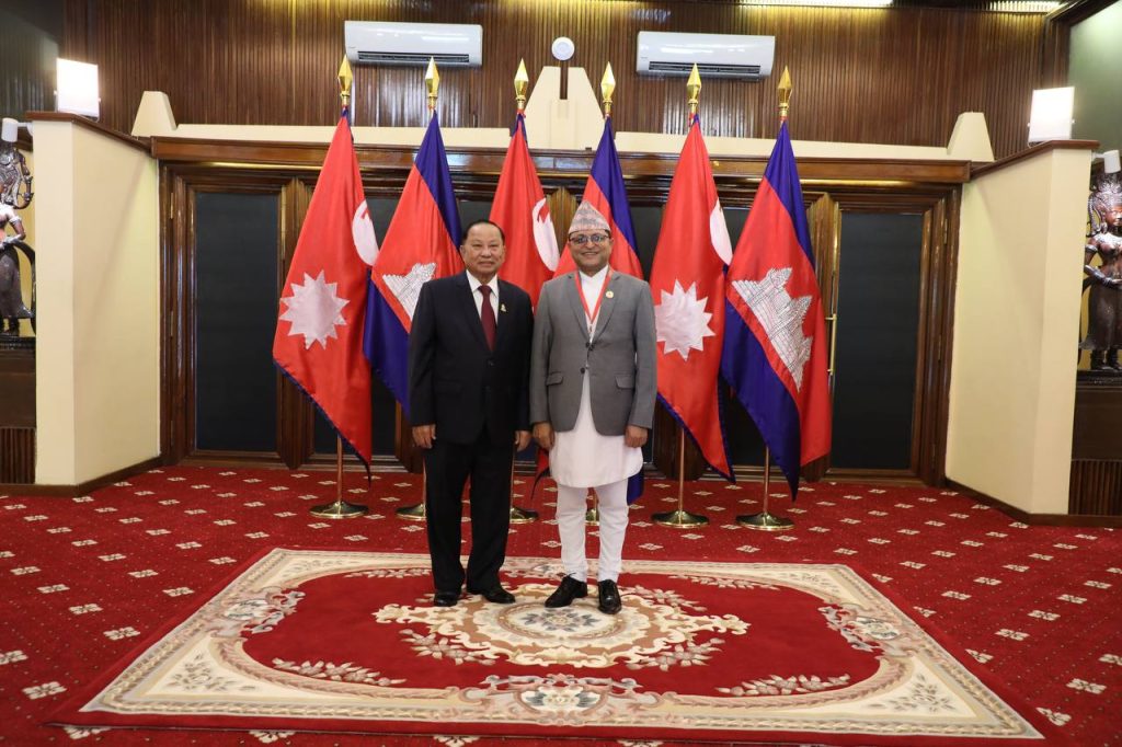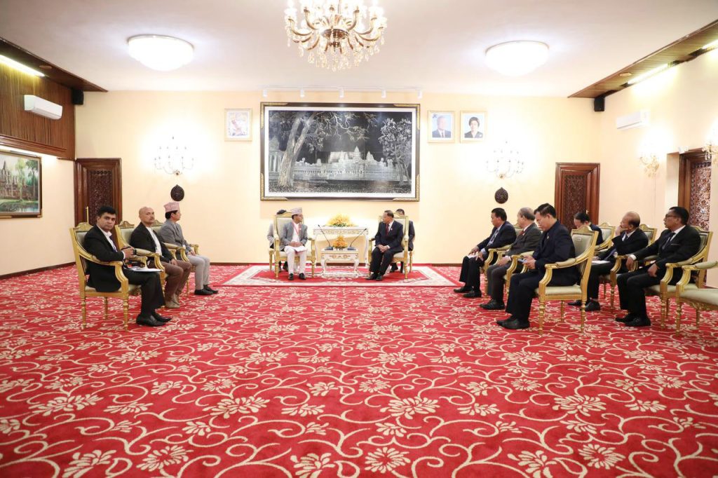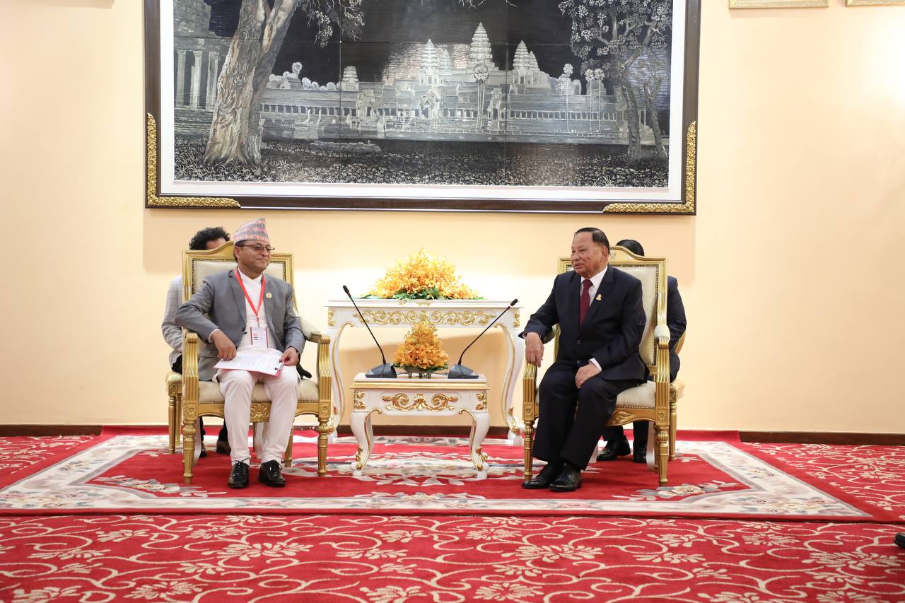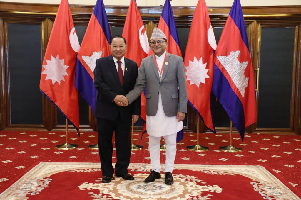 រសៀលថ្ងៃច័ន្ទ ១២កើត ខែពិសាខ ឆ្នាំថោះ បញ្ចស័ក ព.ស២៥៦៦ ត្រូវនឹងថ្ងៃ១ ខែឧសភា ឆ្នាំ២០២៣ សម្តេចវិបុលសេនាភក្តី សាយ ឈុំ ប្រធានព្រឹទ្ធសភា នៃព្រះរាជាណាចក្រកម្ពុជា អនុញ្ញាតជូន ឯកឧត្តម ហ្គាណេស ប្រាសាដ ទីមីលស៊ីណា ប្រធានរដ្ឋសភានេប៉ាល់ (សភាជាន់ខ្ពស់) និងគណៈប្រតិភូ ចូលជួបសម្តែងការគួរសម… ក្នុងឱកាសដែលឯកឧត្តម ដឹកនាំគណៈប្រតិភូ អញ្ជើញមកបំពេញទស្សនកិច្ចការងារនៅព្រះរាជាណាចក្រកម្ពុជា។