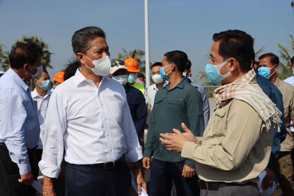 (ខេត្តកំពង់ចាម)៖ នាព្រឹកថ្ងៃទី២៣ ខែមីនា ឆ្នាំ២០២១ ឯកឧត្តម អ៊ុន ចាន់ដា អភិបាលនៃគណៈអភិបាលខេត្តកំពង់ចាម បានអញ្ជើញអមដំណើរឯកឧត្តម ទេសរដ្ឋមន្ត្រី ស៊ុន ចាន់ថុល រដ្ឋមន្ត្រីក្រសួងសាធារណៈការ និងដឹកជញ្ជូន អញ្ជើញចុះពិនិត្យសមិទ្ធផលស្ពានមិត្តភាព កម្ពុជា-ចិន ស្ទឹងត្រង់-ក្រូចឆ្មារ។ ក្នុងដំណើរអញ្ជើញចុះពិនិត្យមានការអញ្ជើញចូលរួមពីប្រតិភូក្រសួងសាធារណការ និងដឹកជញ្ជូន ឯកឧត្តមអភិបាលនៃគណៈអភិបាលខេត្តត្បូងឃ្មុំ អាជ្ញាធរស្រុកទាំងពីរ (ស្ទឹងត្រង់-ក្រូចឆ្មារ) និងមន្ត្រីពាក់ព័ន្ធមួយចំនួនទៀត។